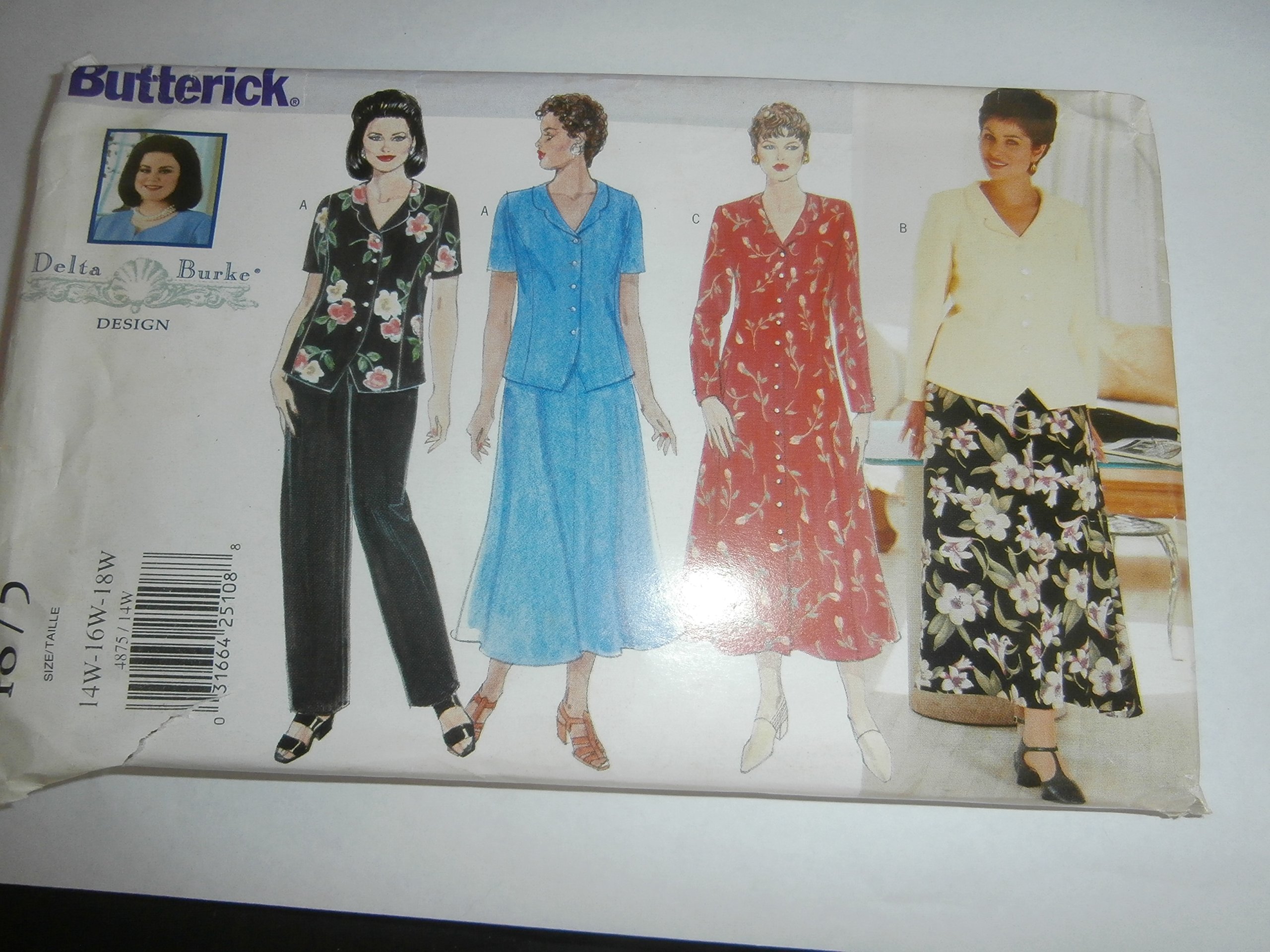 Amazon Com Butterick Sewing Pattern 4875 Women S Dress Top Skirt Pants Size 14w 16w 18w Arts Crafts Sewing